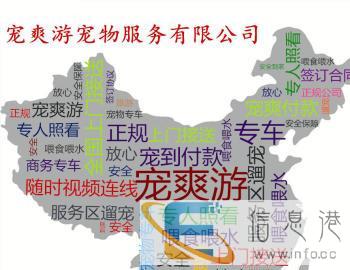 商务专车 享受旅程承接全国宠物托运,全程采用商务专车,旅游式保姆专车直达家门口的方式。空间大,氧气足,直接上门接送。配有专人全程24小时照看,随时观察宠物状态,中途适时喂食喂水,清理粪便,服务区遛宠。有效避免了空运、火车、大巴等把宠物当货物运输导致死亡率高的弊端,打破了死亡自负的霸王条款,填补了宠物专业运输的空白,让爱宠出行不再只能被关小黑屋。让您的爱宠真正享受这次的旅程!!您的爱宠安全到家后付尾款。可代收货款!!有需要随时电话联系,平台回复可能不及时,请谅解。另拒接空运,汽运,铁运,因为安全不能保证。全部订单采用公司直营商务车,公司全程管理。因宠物专车目前无法做到所有城市随时都有车,请有需要的朋友提前预约。南京宠爽游宠物服务有限公司竭诚为您服务!!
